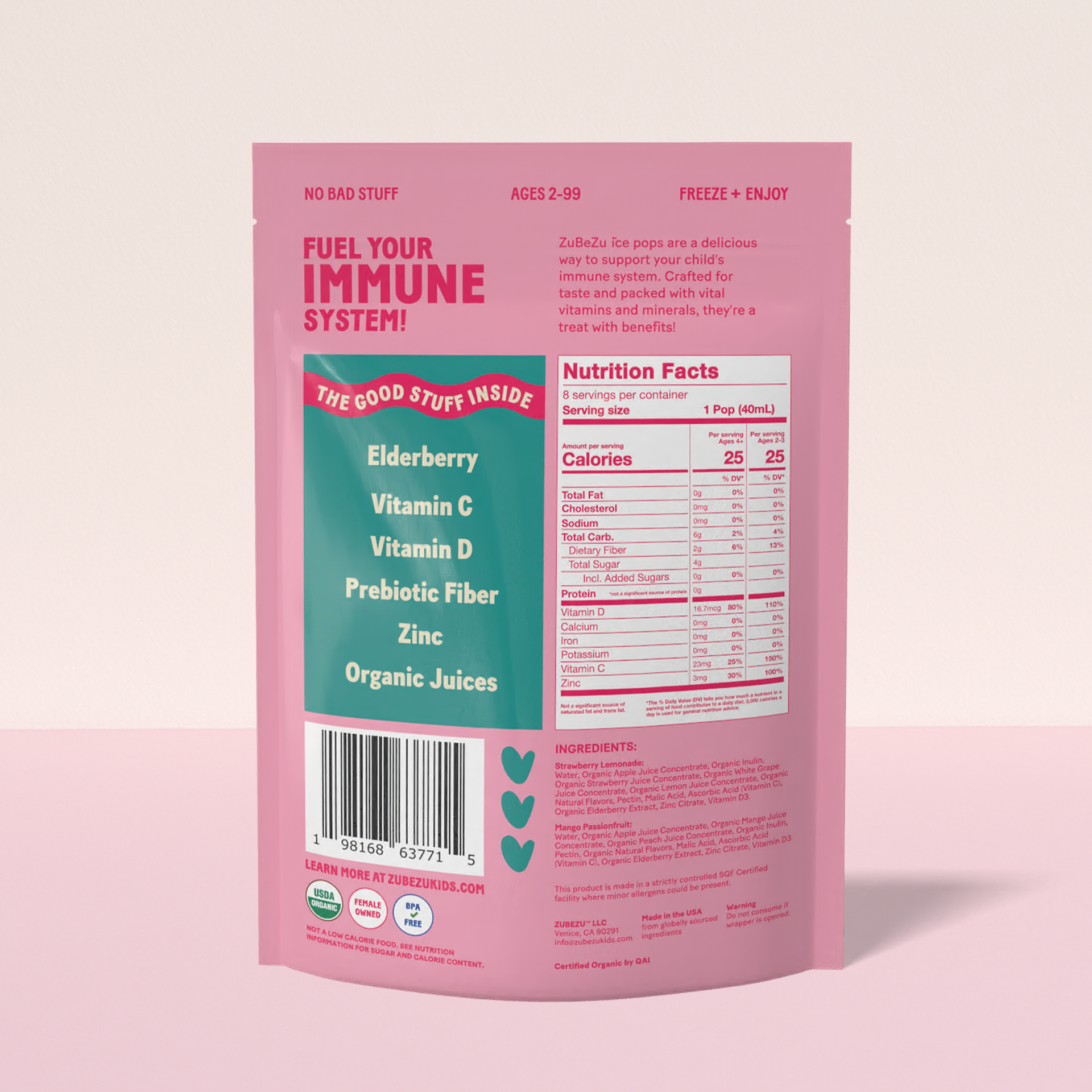 Everyone in our house LOVES these! They are refreshing and great on a hot summer’s day. A perfect alternative to those sugar-y freeze pops for the kiddos -that they love! ZuBeZu ice pops actually have healthy ingredients that are good for you and the kids, and aren’t just full of sugar. We will keep our freezer stocked with these all summer.Lastly, ZuBeZu pop’s are the perfect treat after a sauna session.Don’t sleep on these. Order ZuBeZu ice pops today!